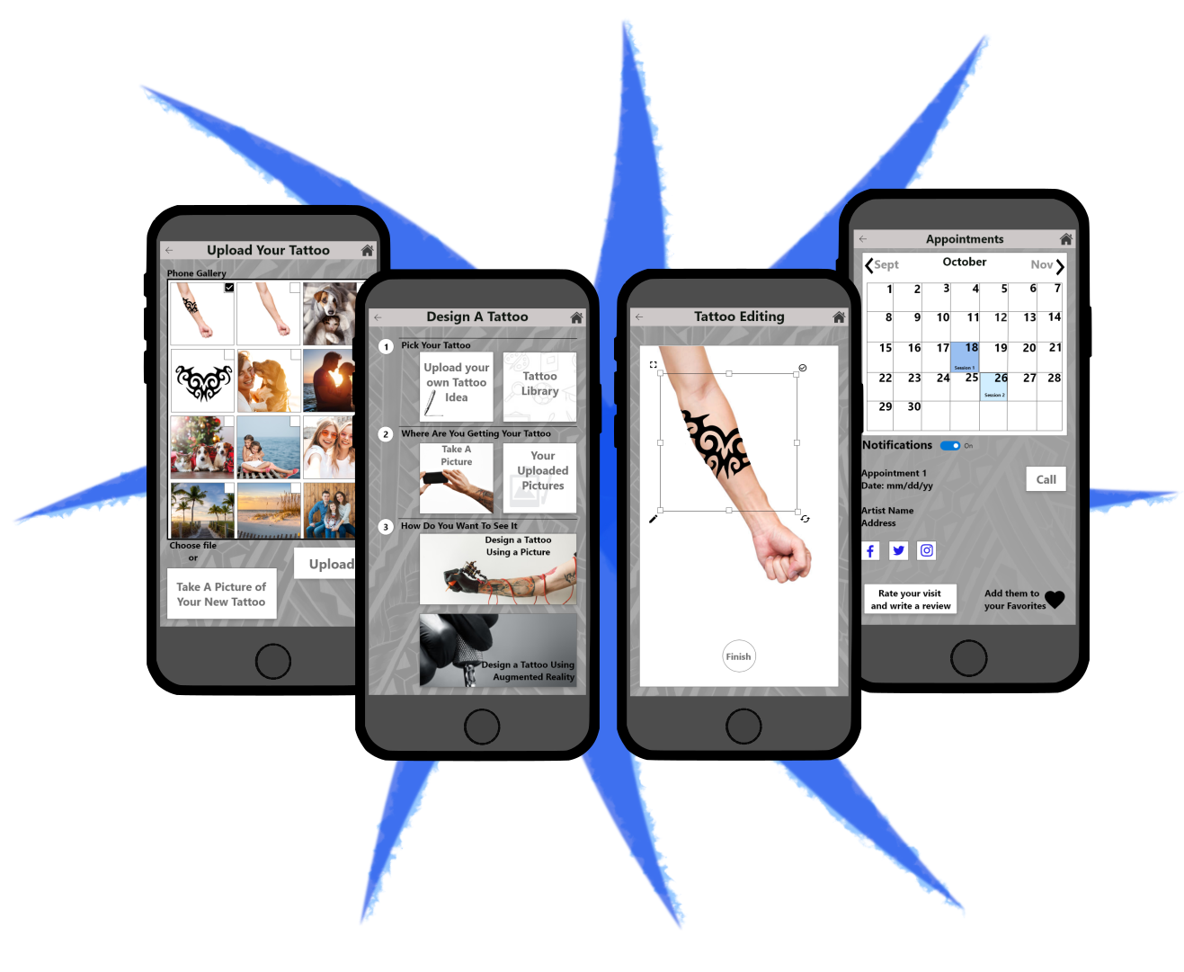 Ink Tank was designed first as tattoo design software. It than evolved into a one stop shop for tattoo needs early in the design. It evolved through natural progression of features that were added for a better user experience.
